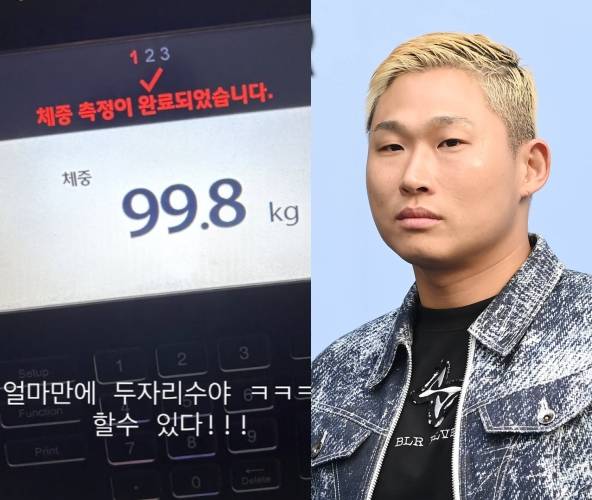 공개된 사진에는 99.8kg으로 측정된 스윙스의 몸무게가 담겨 있어 눈길을 끈다.