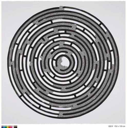 전시의 핵심 키워드인 ‘미로’는 단순한 시각적 패턴이 아닌 감정과 사유의 중첩이 낳은 심리적 구조물이다. 작품 속 복잡하게 얽힌 길들은 작가가 던지는 존재론적 질문이며 완성되지 않은 길과 중심을 향해 나아가는 경로들은 관람객에게 사유와 몰입의 경험을 선사한다. 미로를 따라 걷는 듯한 감각은 관람자에게 작가의 내면 여정을 함께 체험하게 만든다.