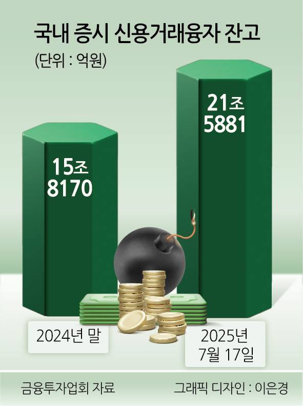 21일 금융투자협회에 따르면 지난 17일 기준 코스피·코스닥 시장의 신용거래융자 잔고 규모는 21조5881억원으로 지난 2022년 6월 14일(21조6086억원) 이후 3년 1개월 만에 최대치를 기록했다.