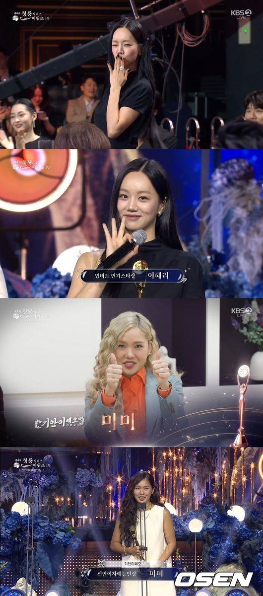 [OSEN=최이정 기자] LG유플러스 콘텐츠 전문 스튜디오 STUDIO X+U의 프로그램을 통해 사랑받은 이혜리, 오마이걸 미미가 제4회 청룡시리즈어워즈에서 수상의 영예를 안았다.