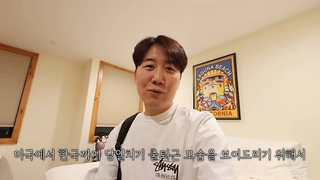 그는 "일을 해야 해서 잠깐 한국에 다녀와야 한다", "밤 비행기를 타고 새벽 4시 반에 인천공항에 도착, 녹화 후 다시 당일 밤 비행기를 타고 LA로 돌아가야 한다"며 한국과 미국을 오가는 스케줄을 예고했다.
