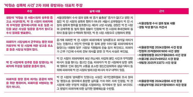 잔디씨가 박 전 시장에게 ‘사랑해요’ ‘꿈에서 만나요’ 같은 메시지를 보낸 사실이나 망인에게 생일 축하 편지를 보낸 사실을 우려먹으며 잔디씨의 피해 사실을 인정할 수 없다는 주장도 반복되고 있다. ②에 해당하는 행정소송 사건을 심리한 서울행정법원 제8부(재판장 이정희)는 다음과 같이 판시했다.