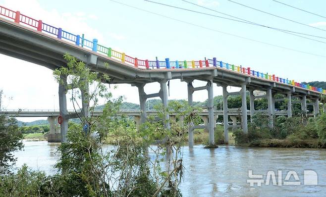 [울산=뉴시스] 배병수 기자 = 21일 울산 중구 옛 삼호교가 이번 집중호우에 교량이 휘어져 있다. 2025.07.21.bbs@newsis.com.