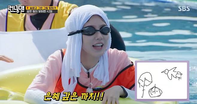 이어진 '숨 참고 그린 그림 맞히기'에서 하하, 김종국, 최다니엘이 물속에서 그림을 그리고 맞히는 미션을 펼쳤다.