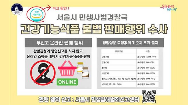 김현중 서울시 민생사법경찰국장 직무대리는 "건강기능식품 구매 시에는 인증마크와 성분 등을 꼼꼼히 확인해 주기 바란다"라고 당부했습니다.