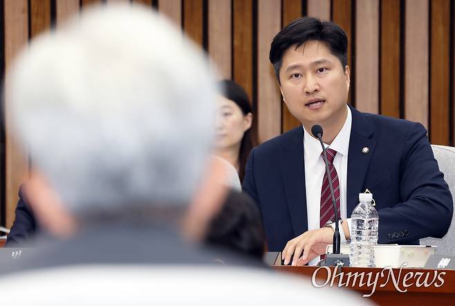 | ▲ 우재준 국민의힘 의원이 21일 국회에서 열린 김상환 헌법재판소장 후보자 인사청문회에서 질의하고 있다. |
