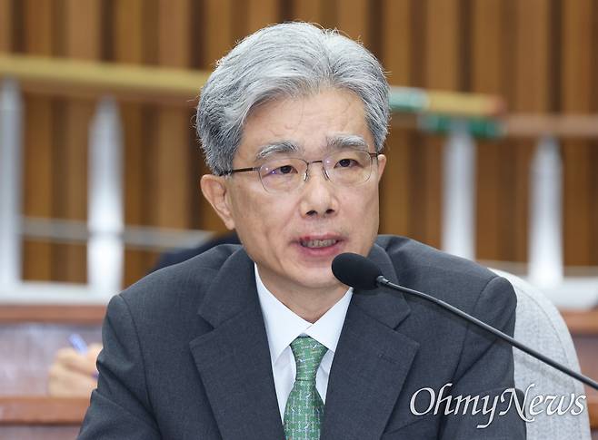 | ▲ 김상환 헌법재판소장 후보자가 21일 국회에서 열린 인사청문회에서 의원 질의에 답변하고 있다. |