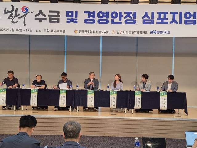 최근 전북 부안 모항해나루가족호텔에서 열린 ‘2025년 한우수급 및 경영안정 심포지엄’이 열렸다. 전북도, 전국한우협회 전북도지회, 한우자조금관리위원회가 주관한 이 자리에서 참석자들은 ▲유전체 분석 호환성 제고 ▲농가 혈통관리 철저 ▲한우 우수 정액 공급 활성화 등 농가 경영안정을 위한 다양한 제언을 쏟아냈다.