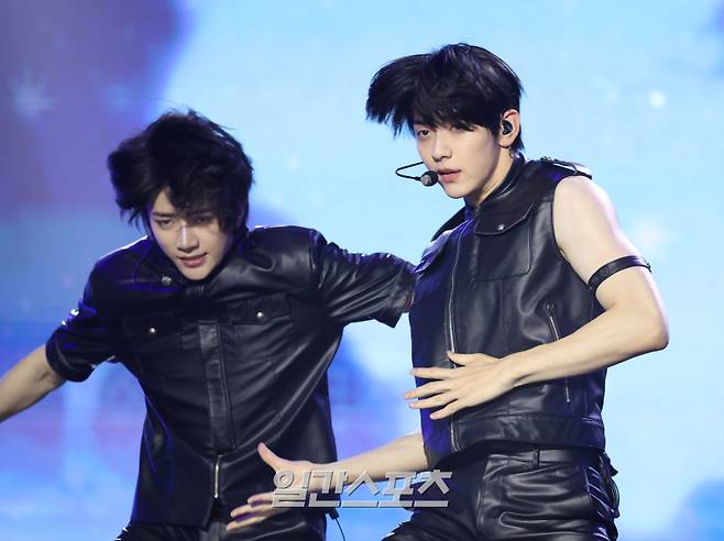 그룹 투모로우바이투게더(TXT)가 21일 오후 서울 동대문구 경희대학교서울캠퍼스평화의전당에서 열린 정규 4집 ‘별의 장: TOGETHER(별의 장: 투게더)’ 발매 기념 쇼케이스에 참석해 타이틀곡 무대를 선보이고 있다.