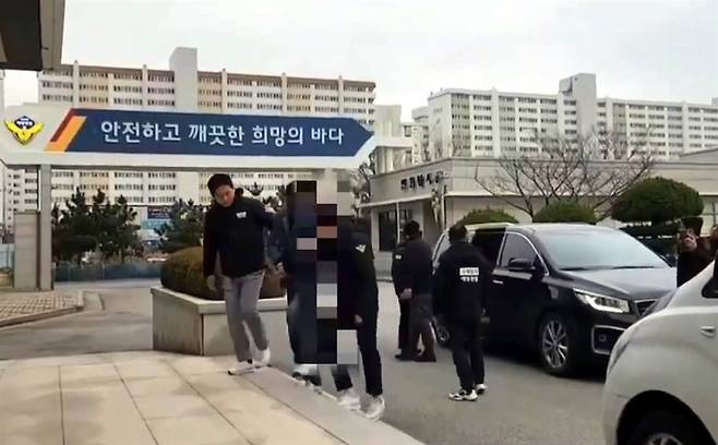 | ▲ 중국으로 밀항을 시도하다가 붙잡힌 '존버킴' 박아무개씨가 목포해경으로 압송되고 있다. |