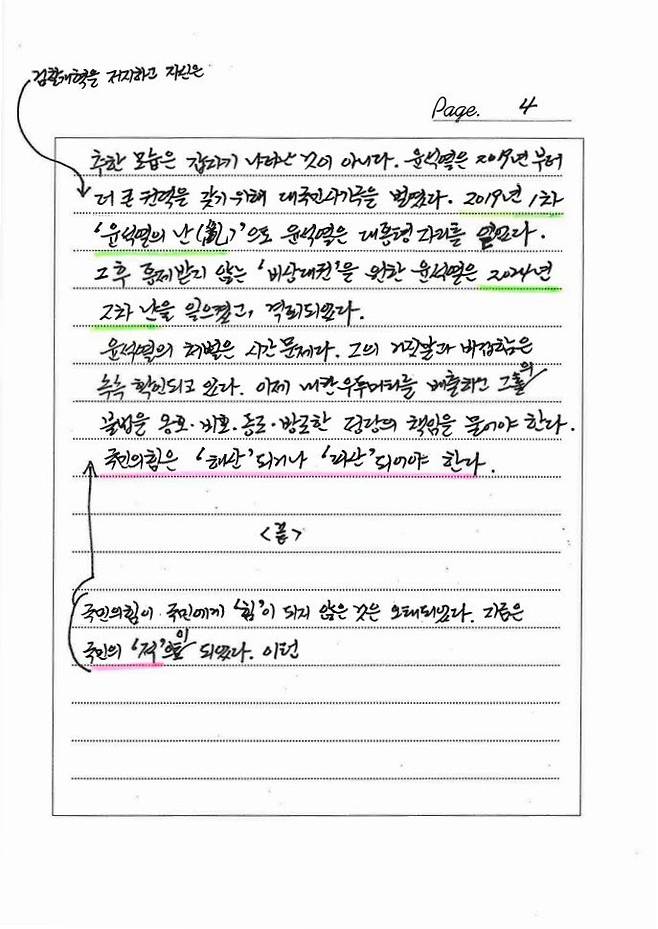 현재 윤석열 대통령의 행태에 대해서도 신랄하게 비판했다. "특검의 소환에 불응하고, 재판에도 불출석한다. 대국민 사과는 하지 않으면서 극우단체 집회에는 메시지를 보내고, 미국에서 온 부정선거 음모론자는 만나려고 한다"며 "폭탄주 실력을 뽐내던 자가 몸이 아파 수사를 받지 못하겠다고 칭얼댄다"고 비꼬았다.