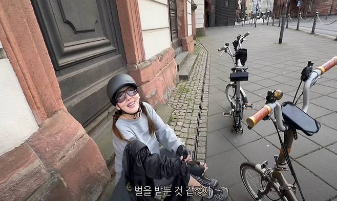 영상 속 민지영은 남편과 함께 독일 프랑크푸르트를 여행했다. 여행 중 민지영은 자전거를 타고 도로를 달렸다. 지금 달리고 있는 도로가 트램이 다니는 길이라는 걸 알아차린 민지영은 앞서가는 남편을 향해 "여기 트램길이네. 우리 뒤에서 트램 오면 위험하니 빨리 가라"라고 외쳤다. 자신도 트램길에서 벗어나려던 민지영은 길 틈에 자전거 바퀴가 끼어 넘어지고 말았다.