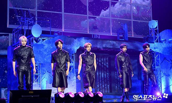 21일 투모로우바이투게더(수빈, 연준, 범규, 태현, 휴닝카이)는 서울 동대문구 경희대학교 평화의전당에서 네 번째 정규 앨범 '별의 장: TOGETHER' 발매 기념 쇼케이스를 개최했다.