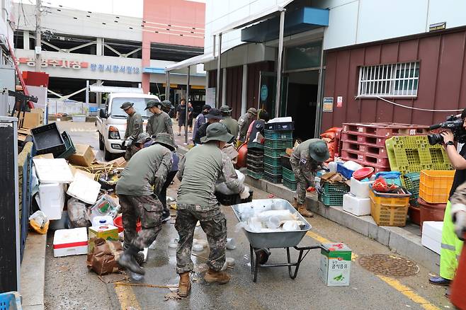 농약종묘사를 운영하는 김춘재(59)씨는 “저지대인 이곳의 치수가 잘못돼 큰비만 왔다하면 수해가 발생하고 있다”며 “손해도 손해지만 시장 상인들이 얼마나 스트레스를 받는지 모른다”고 성토했다. 김씨는 “아직도 전기와 통신이 연결되지 않은 곳이 태반이다”며 “물에 잠긴 콘센트는 감전이나 합선 위험에 사용하지 못하고 있는데, 워낙 피해가 커서 언제 복구가 이뤄질지 앞이 캄캄하다”고 말했다.