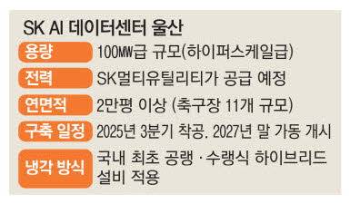 SK그룹이 2027년 말 가동을 목표로 그래픽처리장치(GPU) 6만장을 채울 수 있는 국내 최초이자 최대 규모 인공지능(AI) 전용 하이퍼스케일(100㎿·메가와트급 이상) 데이터센터(DC)를 짓는다.