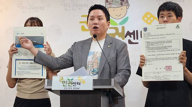 ▲ 21일 오후 수도권 육군부대 갑질 의혹 관련 기자회견 하는 임태훈 군인권센터 소장