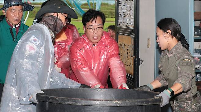▲ 국민의힘 송언석 비상대책위원장 겸 원내대표를 비롯한 당 관계자들이 19일 수해를 당한 충남 예산군 용동3리를 찾아 복구 작업을 하고 있다.