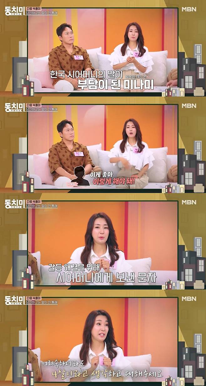 결국 미나미는 갈등 해결을 위해 시어머니에게 직접 문자를 보냈다고 털어놨다. 그는 "'어머니 제가 한국에 온지 4년 밖에 안되니까 어리숙하더라도 4살이라고 생각해주면 안되냐'고 문자를 보냈다"고 고백했다.
