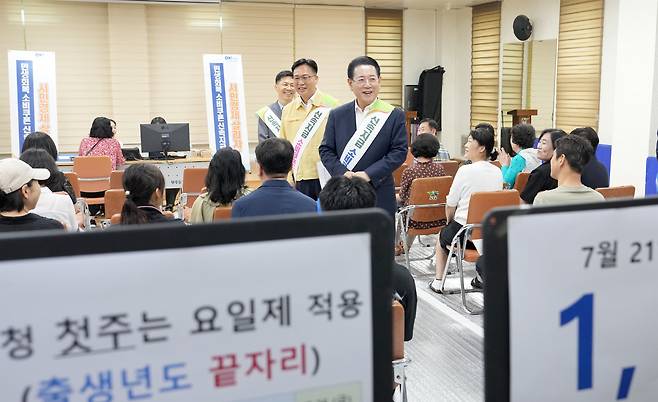 김영록 전남지사는 민생회복소비쿠폰 지급 첫날인 21일 목포 부주동 주민센터를 찾아 현장을 점검했다.