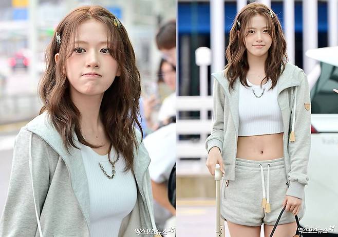 안유진, 상큼한 외모에 '배 드러낸' 공항 패션…장원영과 다른 추구미 어땠나?