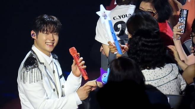 김용빈은 "비 오는 날씨에도 수원 공연장을 찾아주신 분들께 감사드린다"며 감사의 인사를 전했다.