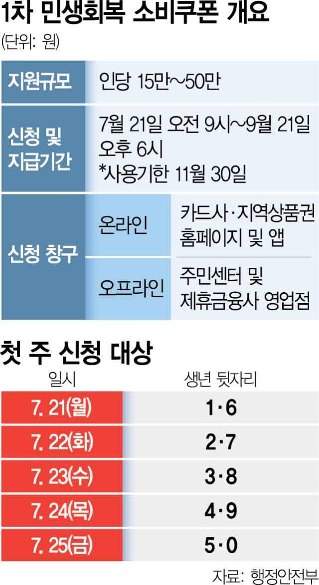 1차 소비쿠폰 신청은 이날부터 9월 12일까지 약 8주간 진행된다.