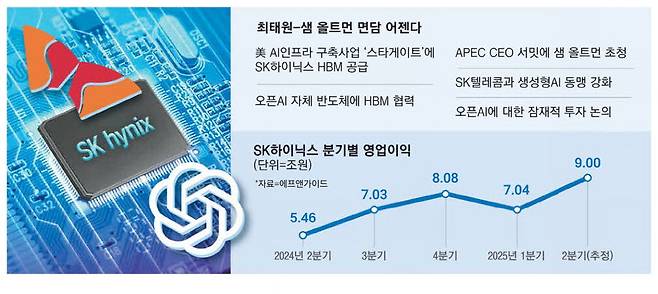 최태원 SK그룹 회장이 최근 곽노정 SK하이닉스 CEO와 함께 올트먼을 만난 것도 이런 AI 생태계의 최상위에 있는 오픈AI와 협력을 강화해 AI 인프라 공급망에서 SK그룹의 영향력을 확대하기 위한 전략으로 풀이된다. SK하이닉스가 고대역폭메모리(HBM) 시장에서 가진 기술 리더십을 강조하고, 오픈AI가 구축하는 AI 인프라에서도 협력을 강화하려는 목적이다.