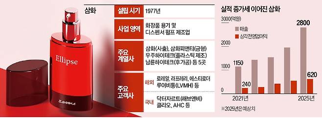 TPG는 2023년 11월 약 3000억원에 삼화와 관계사 네 곳을 인수했다. 이때만 해도 기업가치는 흔한 플라스틱 제조기업 수준에서 책정됐다. TPG가 주목한 것은 용기를 판매할 때 딸려가는 부품으로 인식되던 디스펜서였다. 삼화가 제조하는 디스펜서에는 도시지(분출량 조정), 실링(누출 방지), 프라이밍(잔여물 분출)과 관련한 세계 최고 수준의 기술력이 적용됐다. 경쟁사와 달리 삼화는 삼화금형사라는 금형제조(몰딩) 업체가 전신이어서 정밀한 가공 기술과 숙련된 엔지니어도 다수 보유했다.