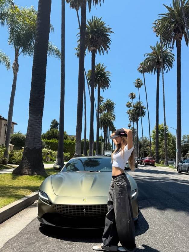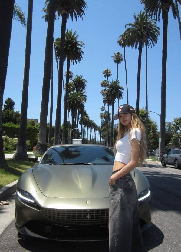 21일 리사는 자신의 SNS에 올블랙 페라리 앞에 선 여유로운 포즈의 사진을 공개했다.