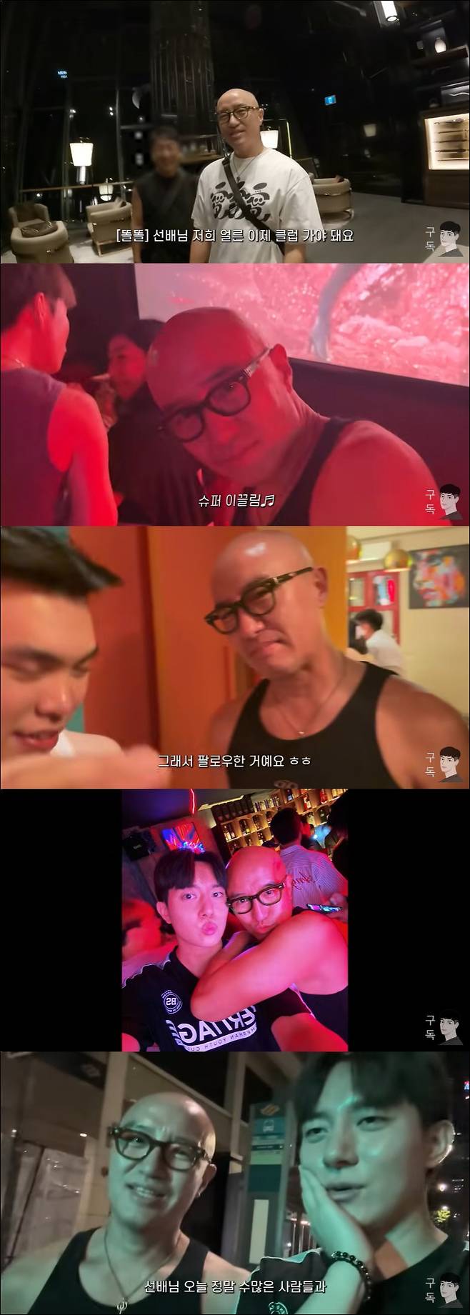 이어 김똘똘은 밖에서 남성들과 대화 중인 홍석천을 찍으며 "홍선배 게이바에 있다가 사라져가지고 제가 따라 나와 봤는데 밖에서 남자들이랑 노닥거리고 있다. 화장실 간 줄 알았는데"라고 폭로해 웃음을 안겼다.