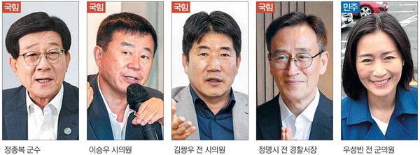 김 전 의원은 지난 지방선거 때 국민의힘 경선 논란의 주역이다. 그는 ‘경선 대상에서 제외→재심 거쳐 기사회생→다시 배제’ 과정을 거친 뒤 시당에서 삭발 및 단식농성을 벌였다. 김 전 의원은 한국해양과학기술원 감사로 재직, 오는 9월 초 임기를 마친다. 김 전 의원이 군수 선거 도전을 앞두고 정동만 국회의원과의 ‘불편한 관계’를 극복할 수 있을지가 관건이다. 정 전 서장은 3년 전 공천에서 ‘천하장사 기장 일꾼’이라는 슬로건을 내걸고 2차 경선에 올랐지만 정 군수에게 밀렸다.