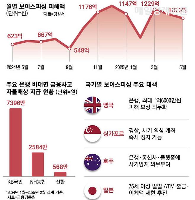 피해를 복구하기 위해 도입된 금융사의 자율배상제도는 도입 1년 만에 유명무실해졌다. 자율배상제도는 비대면 금융사고 발생 시 금융사가 책임을 분담하는 제도다. 지난해 은행권을 대상으로 시행해 올해부터는 제2금융권으로 참여 대상을 확대했다. 하지만 금감원에 따르면 지난해 1월부터 올해 2월까지 KB국민·신한·우리·하나·NH농협 등 국내 5대 은행의 실제 배상액은 1억5500만원에 그쳤다.