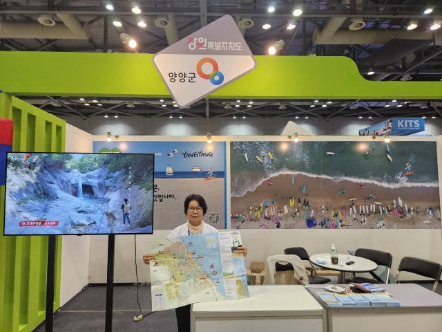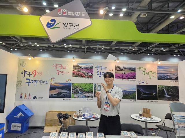 ‘양구 9경, 구경 갈시간’. 양구군은 양구수목원, 한반도섬, 두타연, 상무룡출렁다리 등 양구에서만 보고 느낄 수 있는 자연 경관을 소개하는데 집중했다. 방문객들은 ‘양구구경여행지도’란 이름의 팸플릿을 통해 지역 역사·문화, 야영장 위치, 국가유산, 교통 정보 등도 상세히 알 수 있었다.