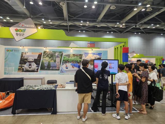 횡성군은 국내 최장길이(2.4㎞) 루지 체험장에서 사용되는 카트를 부스 전면에 내세운 포토존이 관광객의 눈길을 단번에 사로잡으며 발길을 멈춰세웠다. 지난 2020년 8월 첫 개장한 횡성루지체험장은 우천면 오원리-안흥리 옛 국도 42호선 폐도로를 활용, 단일코스로는 최장길이를 자랑한다.
