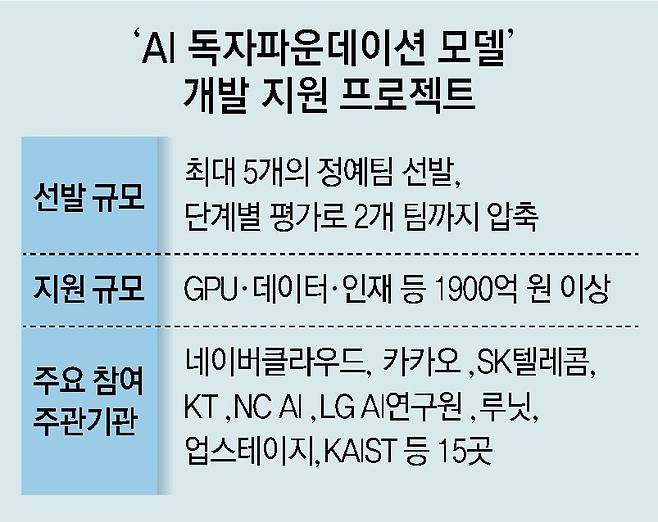 1900억 원 이상의 예산이 투입되는 이 사업에 대기업과 AI 스타트업, 주요 대학 등이 주관 또는 참여 기관으로 대거 나섰다.