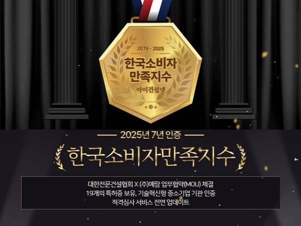 아이건설넷이 '2025 한국소비자만족지수 1위' 정보서비스(입찰정보 및 분석) 부문을 7년 연속 수상했다.