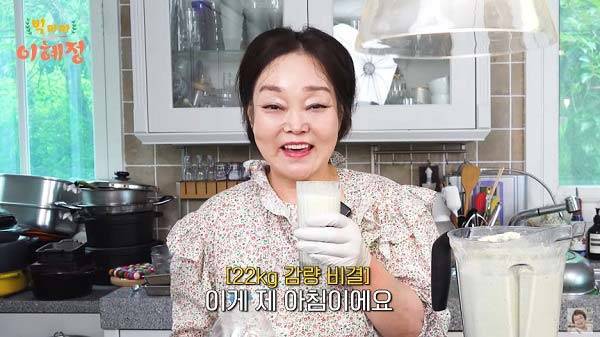 이혜정은 "22kg을 감량하고 5년째 유지 중인데 매일 아침 꼭 챙겨 먹는 게 있다"며 "바로 콩국물이다"라고 말했다.