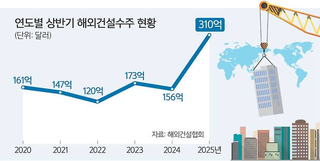 올해 상반기 해외건설 수주액이 11년 만에 300억달러(약 41조원)를 넘어서며 '해외건설 연 500억달러 수주'라는 정부 목표에도 청신호가 켜졌다.