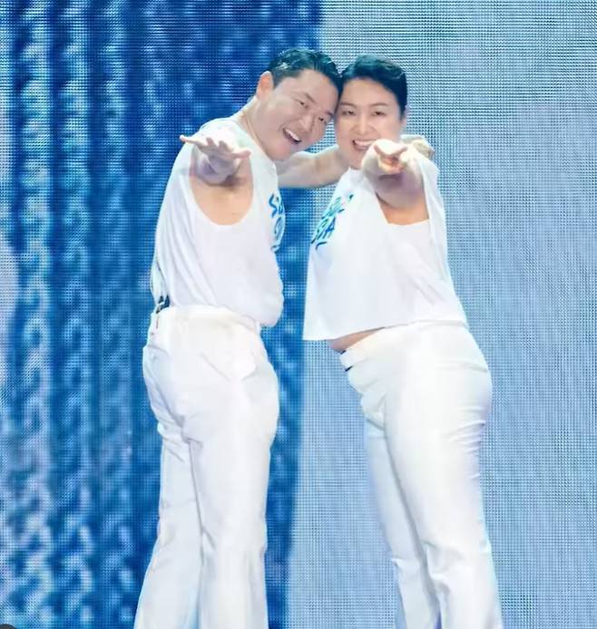 싸이와 이수지는 19일 진행된 과천 '흠뻑쇼' 공연에서 함께 무대를 꾸몄다.