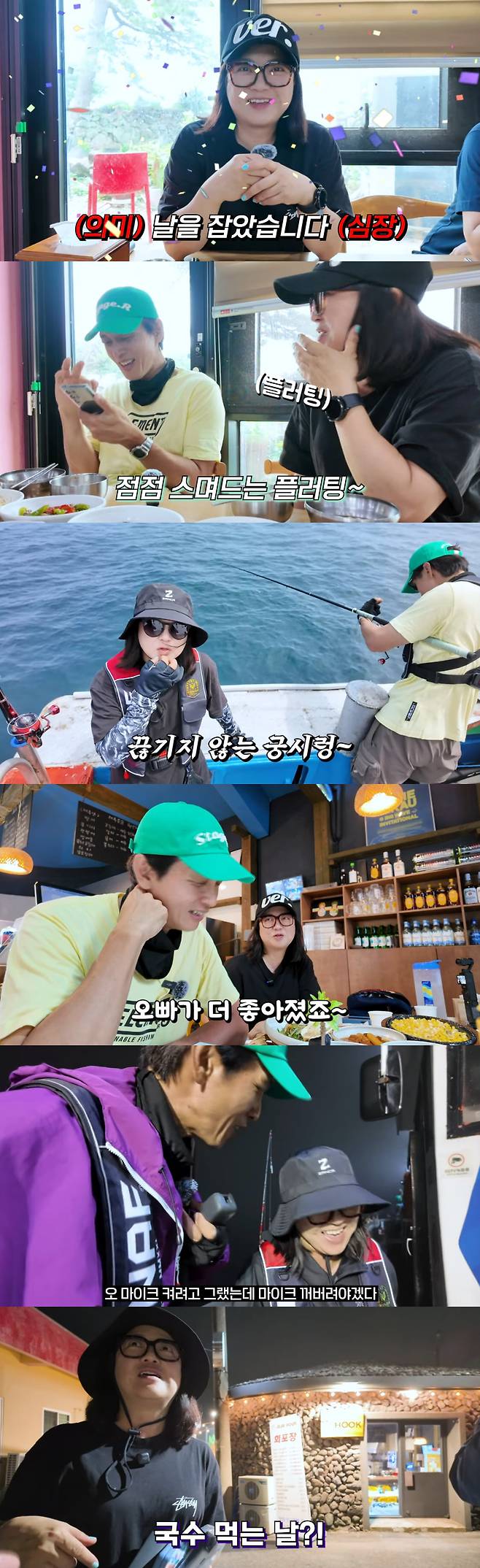 구본승은 "내가 얼마 전에 상어 잡았는데 여기서 나가서 잡은 거다"라며 "네가 그거 보고 나한테 연락한 거 아니냐"고 말했다. 그러자 김숙은 "아니다. 오빠보고 (연락)한 거다"라며 "오빠한테 혹해서 전화한 거지 상어 잡아서 뭐하냐"며 농담 섞인 플러팅으로 분위기를 띄웠다.