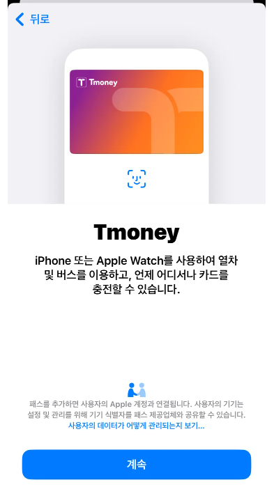 앞서 티머니는 지난달 16일 SNS 통해 "티머니가 아이폰과 애플워치에 찾아온다"고 밝혔지만 구체적인 도입 시기나 연동 방식 등 구체적인 사항은 알리지 않았습니다. 하지만 최근 업데이트를 통해 오늘부터 기습적으로 서비스를 시작했습니다.
