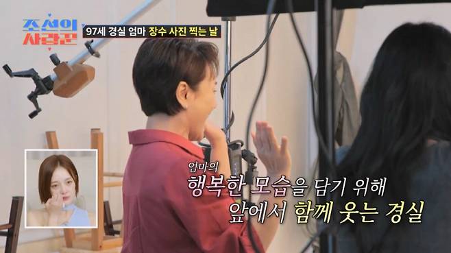 사진을 찍으러 가기 전, 이경실은 손수 어머니의 화장을 도왔다. 어머니가 서툴게 립스틱을 바르자, 이경실은 "왜 이렇게 못 바르냐. 옛날에는 잘만 발랐으면서"라며 속상한 마음을 감추고 립스틱을 조심스레 대신 발라드렸다. 이 모습을 지켜보던 김국진은 결국 참았던 눈물을 흘렸다. 이후 사진관에 도착한 이경실은 제작진과의 인터뷰에서 "만약 엄마가 돌아가신다면 "이 연세까지 곱게 사시다가 가셨어요"라고 얘기하고 싶지, "우리 엄마 예전 사진이에요" 이러고 싶지 않다"며 '장수사진' 촬영 이유를 설명했다.