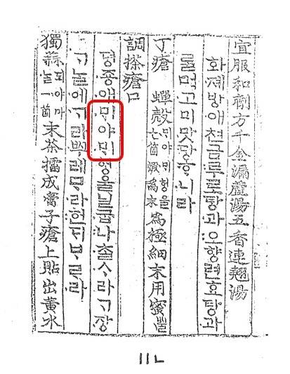| ▲ 구급간이방에 매미 표기 한문에 한글 언해를 곁들인 의학서 <구급간이방>에는 매미의 조선시대 표기가 실려 있다 |