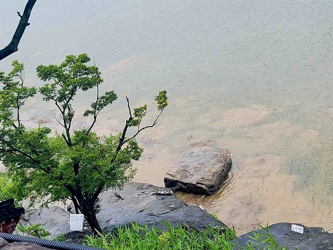 | ▲ 의암 논개가 왜장을 끌어안고 남강에 투신한 바위 |