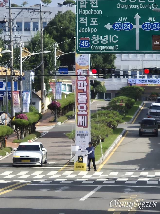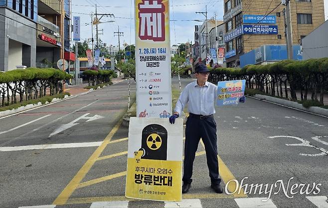 | ▲ 배종혁 창녕환경운동연합 공동의장이 경남 창녕군청 앞 '일본 후쿠시마 핵오염수 방류 반대' 1인시위를 하고 있다. |