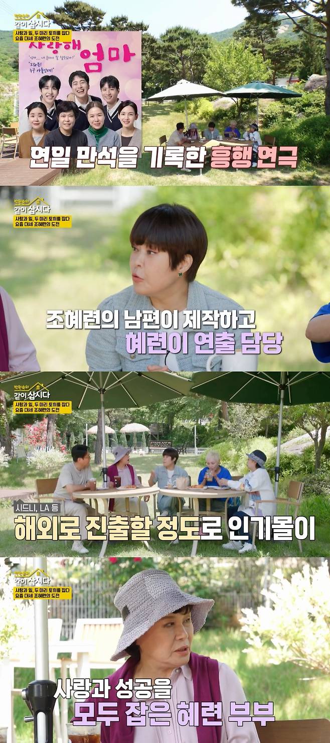 조혜련은 "'사랑해 엄마'라는 연극이 며칠 전에 끝났는데, 남편이 제작하고 제가 연출을 했다. 너무 잘돼서 시드니도 가고 LA도 가게 됐다"라고 밝혔다.