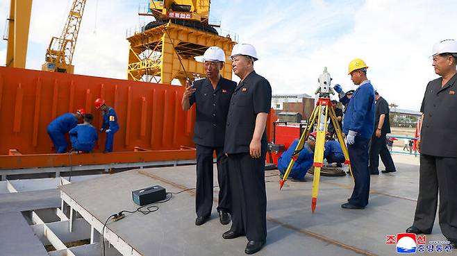 조선중앙통신은 남포조선소 종업원들이 궐기 모임을 열어 "2026년 10월 10일까지 또 한 척의 신형구축함을 건조할 것을 결의"했다고 보도했습니다.