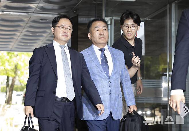 [서울=뉴시스] 김근수 기자 = 김계환 전 해병대 사령관이 22일 오전 서울 서초구 서울중앙지방법원에서 구속 전 피의자 심문(영장실질심사)을 받기 위해 출석하고 있다. 2025.07.22. ks@newsis.com