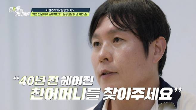 지난 21일 방송된 채널A 예능 '탐정들의 영업비밀'에서는 김태희가 40년 전 헤어진 친어머니를 찾는 의뢰를 의뢰인으로 등장했다.