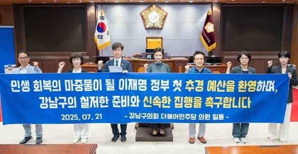강남구의회 더불어민주당 소속 의원들이 이재명 정부 첫 추경 예산의 신속한 통과를 환영하며, 강남구의 철저한 준비와 신속한 집행을 촉구했다.
